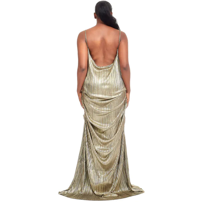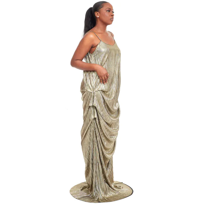 he Agovi Dress is crafted from a luxurious, high-quality silk fabric that drapes beautifully on the body. Its defining feature? Three expertly placed pleats along the side — adding structure, movement, and a subtle touch of drama.